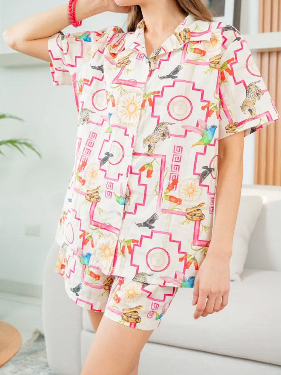 El Conjunto P.A.C.H.A está confeccionado con una mezcla ligera y fresca de 80% lino y 20% algodón, ideal para climas cálidos. Presenta un estampado digital que aporta personalidad y detalle a la prenda. Para conservar su calidad, se recomienda no lavar en agua caliente ni usar secadora. Secar siempre a la sombra para mantener intactos los colores y la textura del tejido.