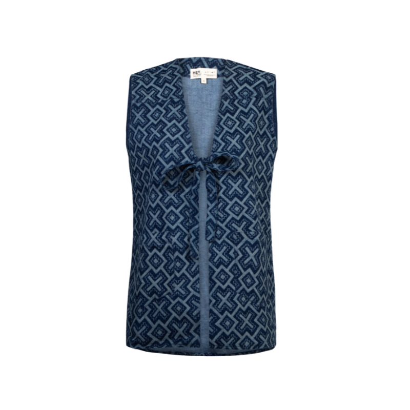 Este producto está confeccionado en denim de cáñamo con una composición de 66% algodón y 44% cáñamo, ofreciendo una alternativa textil más responsable y duradera. Presenta un exclusivo estampado láser con diseño Xao Kené, ilustrado por la artista Milka Franco. Puedes combinarlo con nuestros Milka Pants para llevarte el set Milka completo. Esta colaboración única ha sido posible gracias al trabajo conjunto de HEY., el Colectivo Shipibas Muralistas y Gáby Vásquez.